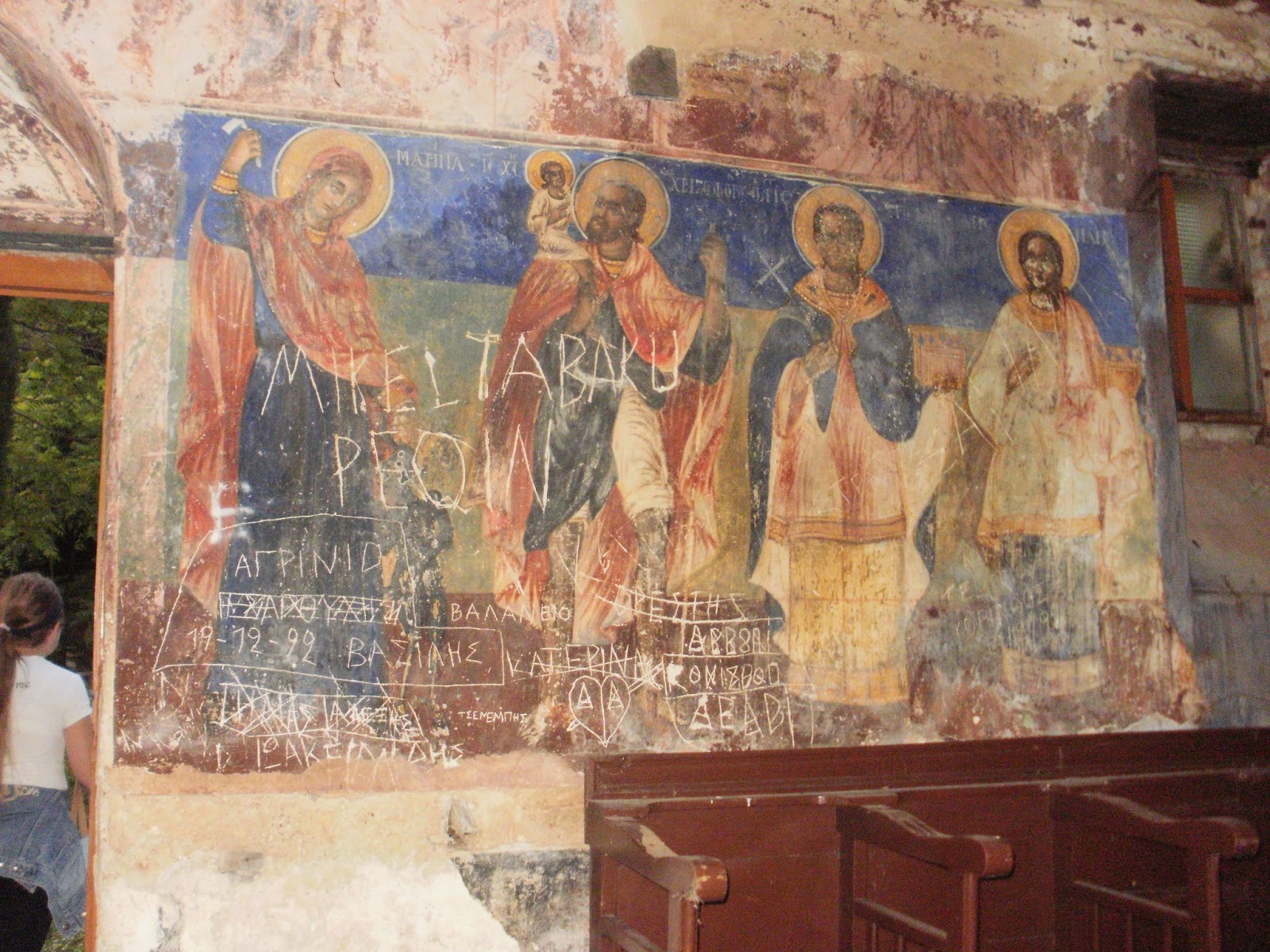 | Τοιχογραφίες με "αυτόγραφα" στην παλιά Σαγιάδα |