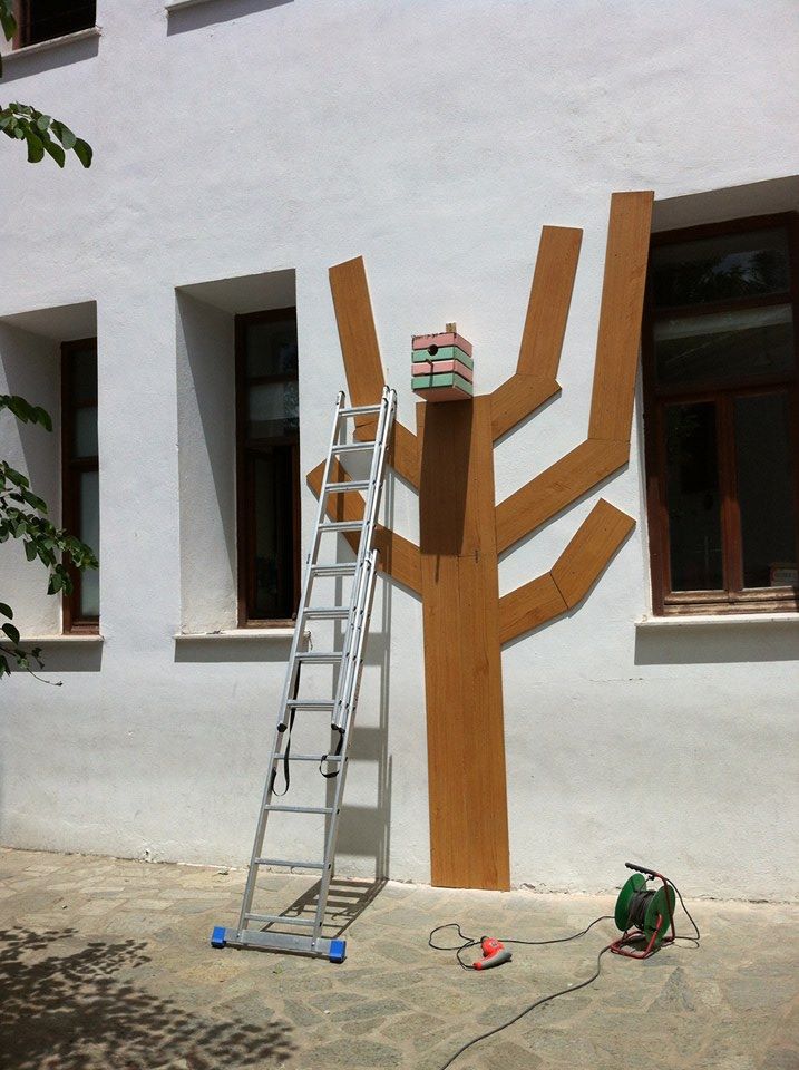 "Make it and they will come..." Μια διάσημη φράση από μια υπέροχη ταινία, (https://www.imdb.com/title/tt0097351/) όπου ο πρωταγωνιστής έφτιαξε ένα γήπεδο του Baseball και με έναν μαγικό τρόπο ήρθε να παίξει σ'αυτό μία ομάδα του παρελθόντος...!!! Εμείς δεν ψάχνουμε για μαγικά!!! Απλά φτιάξαμε ένα ξύλινο δέντρο, στον τοίχο του Σχολείου μας, το γεμίσαμε με φωλιές πουλιών, με την ελπίδα πως οι φτερωτοί φίλοι μας, θα έρθουν να το κατοικίσουν!!!