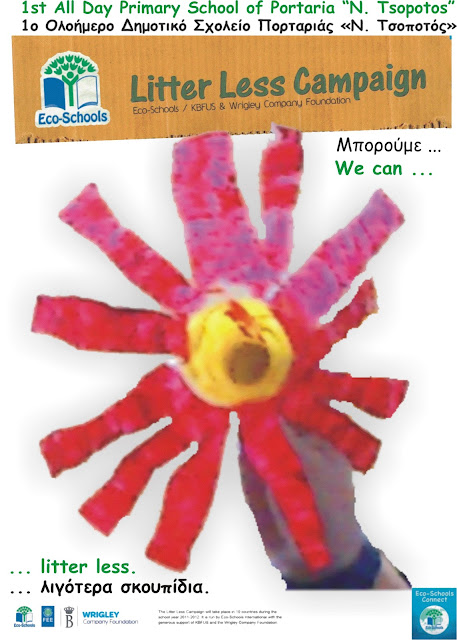 Το σχολείο μας συμμετέχει για δεύτερη χρονιά στο πρόγραμμα "Litter Less" που συντονίζεται από τα "Οικολογικά Σχολεία" στην Ελλάδα. Μέσα απο την εξέλιξη του προγράμματος οι μαθητές θα γνωρίσουν, θα συζητήσουν, θα αποφασίσουν και θα παρέμβουν στην τοπική κοινωνία και το χώρο για να ευαισθητοποιήσουν την κονή γνώμη σχετικά με το μεγάλο πρόβλημα των απορριμμάτων και τις καταστροφές που προκαλούνται στο περιβάλλον.