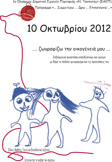 Πρώτη ενδοσχολική συνάντηση - επιμόρφωση του προγράμματος "... Συμμετέχω ... Δρω ... Επικοινωνώ ..." την Τετάρτη 10 Οκτωβρίου 2012, ώρα 13:00, στην αίθουσα πολυμέσων του Σχολείου (νέο κτίριο). Η συνάντηση επικεντρώνεται στους εκπαιδευτικούς του σχολείου και στους γονείς της Α τάξη και έχει ως θέμα "Το παιδικό ιχνογράφημα και οι προεκτάσεις του". Την πρώτη συνάντηση συντονίζουν οι εκπαιδευτικοί Ελισσάβετ Νασιάκου και Καραγιάννης Ηρακλής. Συμμετείχε στη δράση μέσα στην τάξη η Κωνσταντίνα Ρούσσα. Το πρόγραμμα με αφορμή το ιχνογράφημα θα ξετυλίξει το κουβάρι των σχέσεων, των ρόλων και της επικοινωνίας μέσα στην οικογένεια και στο σχολείο μέσα από "βήματα" που θα απευθύνονται παράλληλα σε διαφορετικές ομάδες (μαθητές - γονείς - εκπαιδευτικοί).